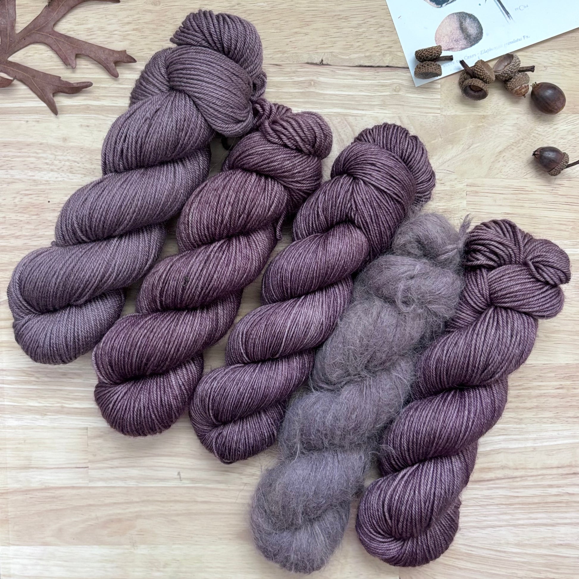 Truffle is a soft cocoa brown semisolid colorway with a slightly heathered effect. On Suri and Non-Superwash bases this color takes on a cooler grey-brown tone.